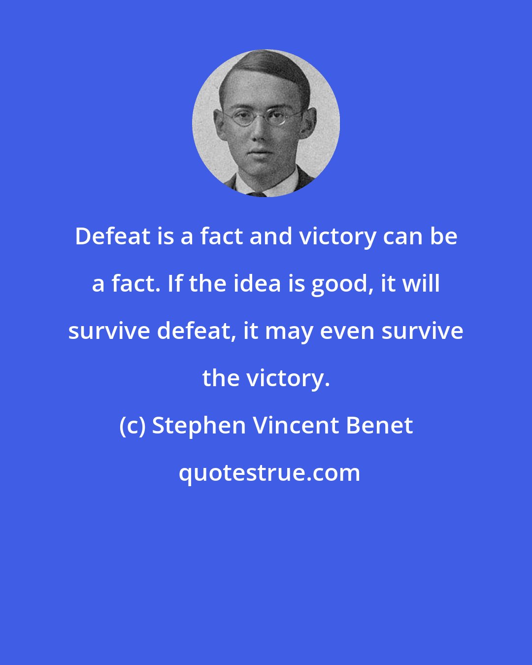 Defeat is a fact and victory can be a fact. If the idea is good, it will survive defeat, it may even survive the victory.