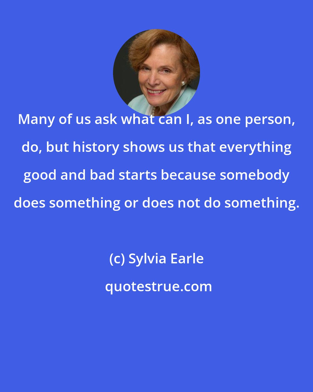 Many of us ask what can I, as one person, do, but history shows us that everything good and bad starts because somebody does something or does not do something.