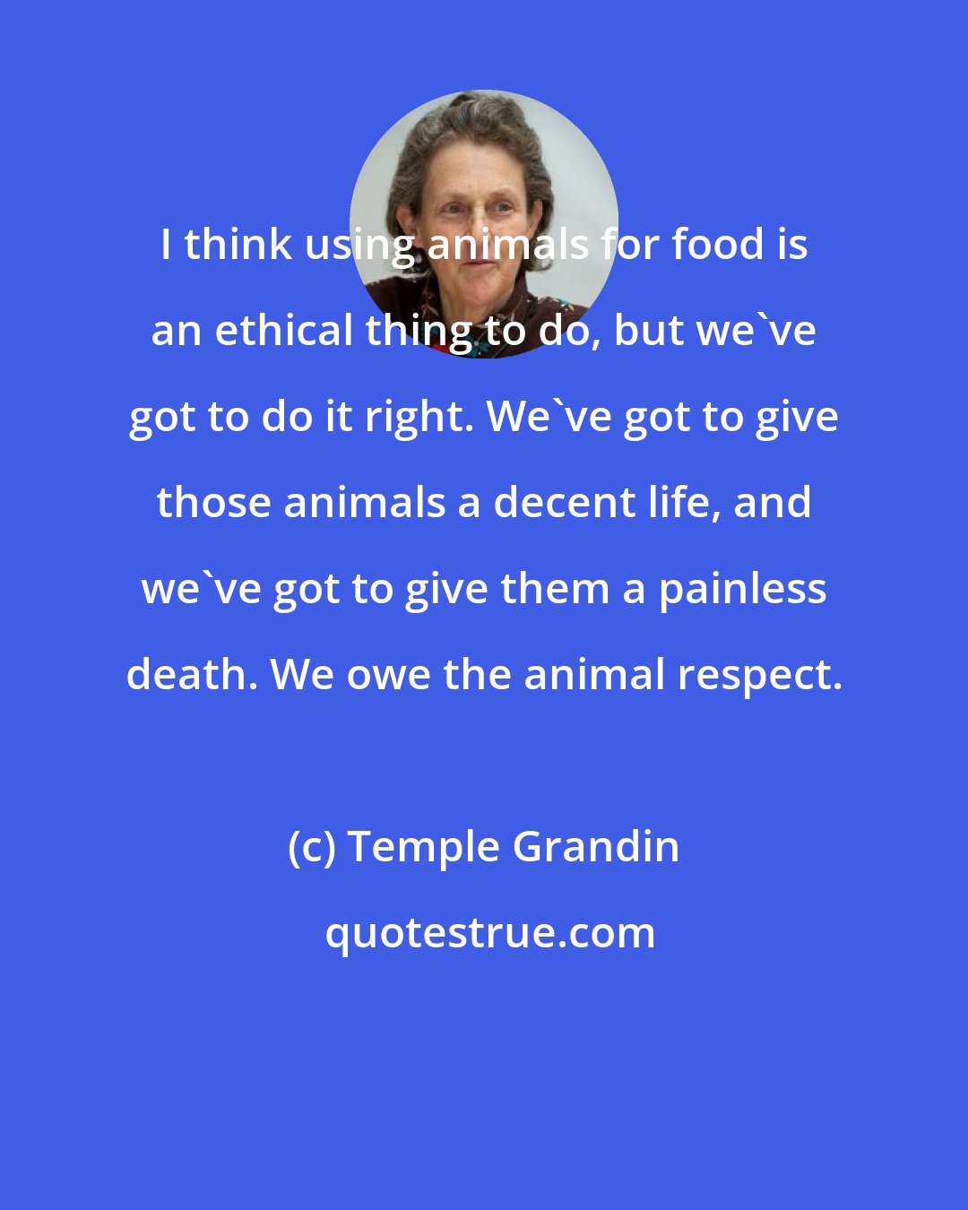 I think using animals for food is an ethical thing to do, but we've got to do it right. We've got to give those animals a decent life, and we've got to give them a painless death. We owe the animal respect.