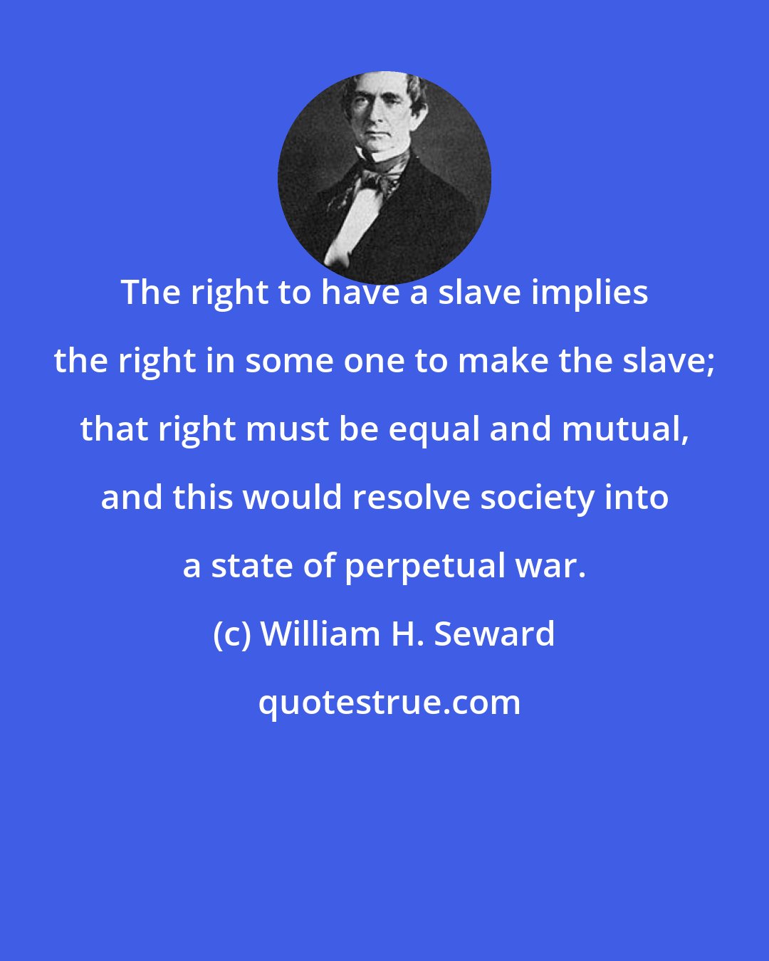 The right to have a slave implies the right in some one to make the slave; that right must be equal and mutual, and this would resolve society into a state of perpetual war.